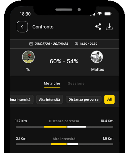 Accedi all’analisi delle tue sessioni, confrontati con i compagni di squadra e crea sfide che ti spingono a migliorare settimana dopo settimana.